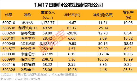 截至发稿,1月17日晚间已有10家公司发布2024年业绩快报。中信证券、招商证券2024年分别实现净利润217.04亿元,103.67亿元,同比增幅分别为10.06%、18.29%。