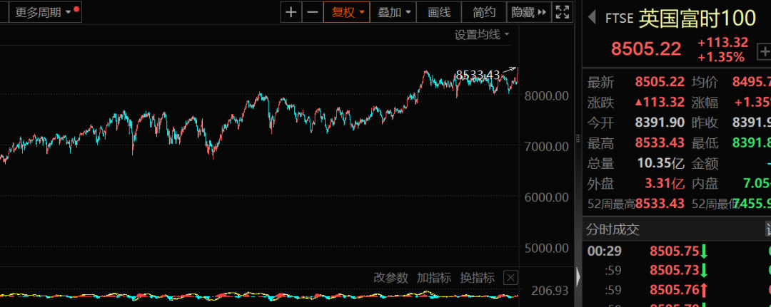 本周海外市场赚钱效应明显回温,欧美股市主要股指集体上涨。其中,英国富时100指数、德国DAX30指数周内双双创出历史新高;纳斯达克中国金龙指数本周累计上涨6.19%,热门中概股普涨。