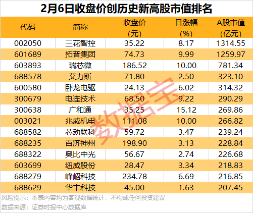 收盘创历史新高股中,今日股价平均上涨8.97%,涨停的有安凯微、恒工精密、长盛轴承等,涨幅居前的有骏创科技、广和通、龙迅股份等。