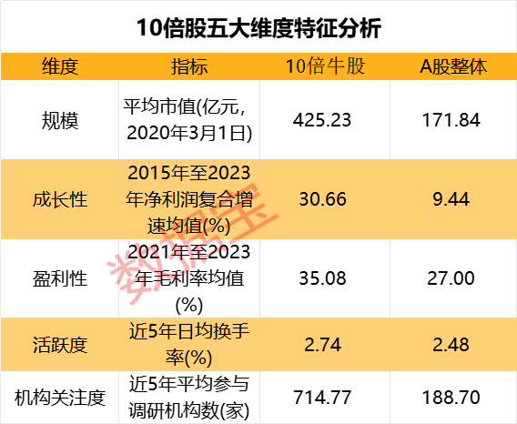 综上来看,10倍牛股主要具备五大显著特征,一是主要集中于科技行业,二是公司规模较高,三是活跃度较高,四是业绩成长性、盈利性突出,五是机构关注度较高。