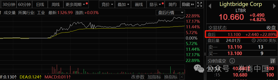 在上述消息发布之后,美股核能板块盘后大涨。Lightbridge狂飙超22%,Oklo Inc盘后大涨超18%,NuScale Power大涨超16%。