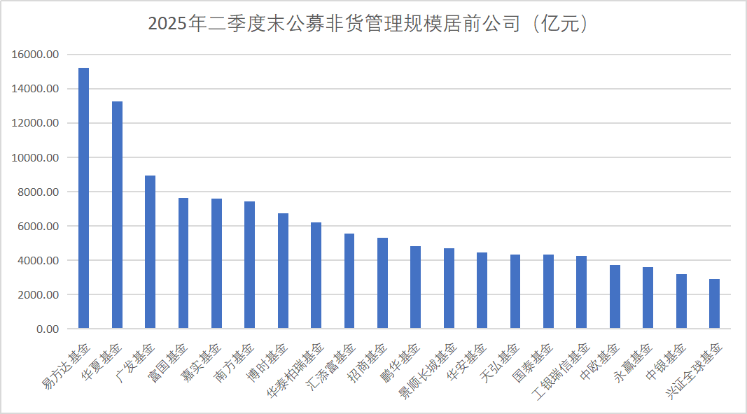 体现在基金公司层面,全市场近120家公募持牌机构管理规模在二季度实现增长,华夏基金、易方达基金、嘉实基金和富国基金4家基金公司二季度管理规模均增长超1000亿元。其中华夏基金公募管理规模历史首次超过2万亿元,与易方达基金管理规模差距缩窄至636.47亿元。