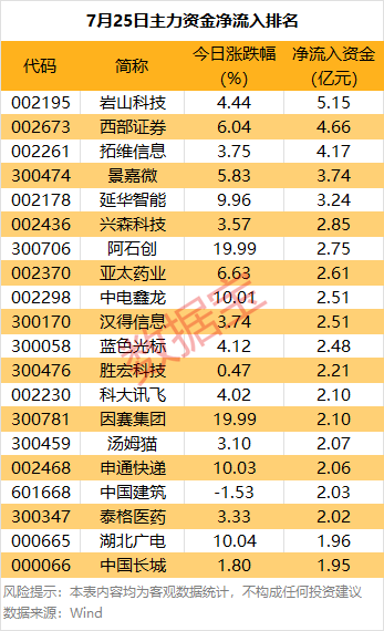 岩山科技主力资金净流入5.15亿元,居首。今日,计算机行业震荡走高,岩山科技涨4.44%,科大讯飞、虹软科技和拓维信息等个股纷纷跟涨。