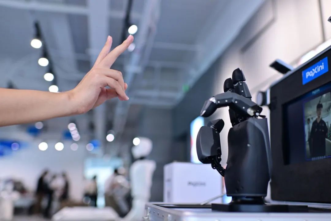 与机器人近距离接触所感受到的科技震撼,要远比看视频来得真切。在帕西尼感知科技(深圳)有限公司(下称“帕西尼科技”)展台前,只要伸出右手做动作,展台上的灵巧手就能够一比一复刻这些动作,迅速且精准。