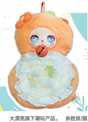 大漂亮公司的产品种类众多,衍生产品从角色模型拓展到T恤、填充玩具、钥匙扣、手机壳等多种品类。未东方拿起潮玩上的一个零部件向记者介绍,紧急情况下可以用作发带。