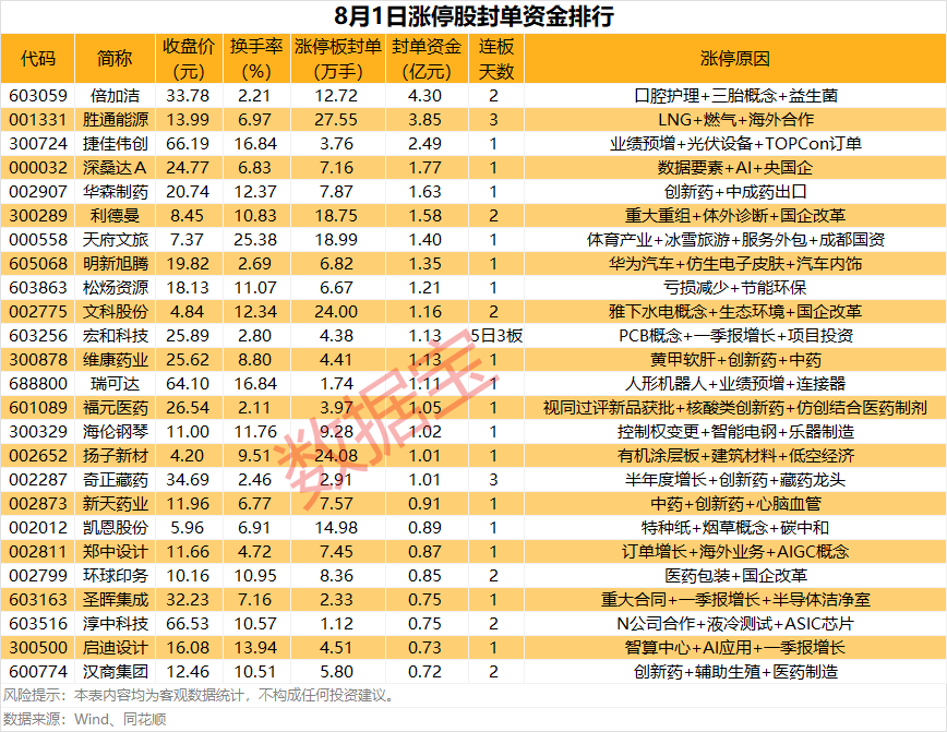 涨停战场:热门股倍加洁封单金额超4亿元