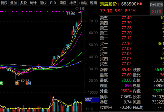 慧辰股份的股价表现也非常亮眼,周线已经十连阳。