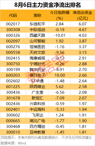 海康威视、东信和平、恒瑞医药、深桑达A、飞荣达、中际旭创尾盘主力资金净流出金额也居前。