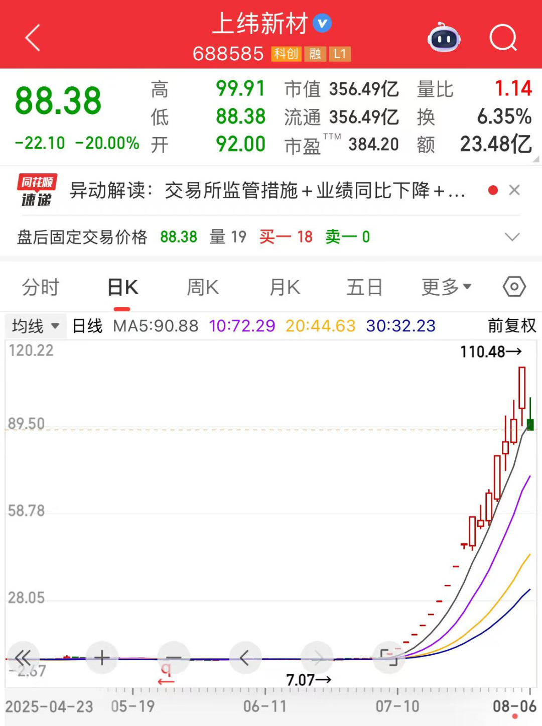 就在8月5日晚间,公司发布风险提示称,公司股票自2025年7月9日至2025年8月5日累计上涨13.2倍,其间多次触及股票交易异常波动及严重异常波动情形,如未来公司股票价格进一步上涨,公司可能再次向上交所申请连续停牌核查,投资者参与交易可能面临较大风险。