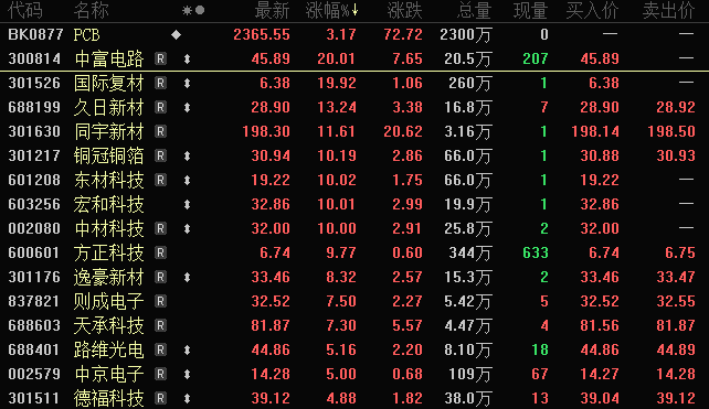 PCB概念多股涨停