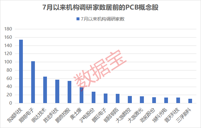 机构关注度来看,26股7月以来获得机构调研,其中15股机构调研家数超过10家,PCB概念备受机构关注。东威科技、顺络电子、崇达技术获机构调研家数居前,分别达到154家、102家、65家。