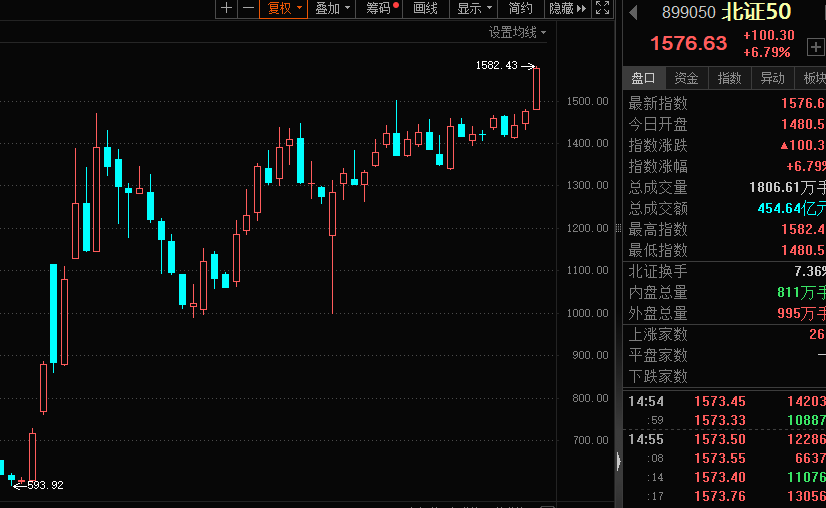 A股市场核心指数中,北证50指数表现最火爆。截至收盘,北证50指数大涨6.79%,年内累计上涨51.92%,最新指数创历史新高。