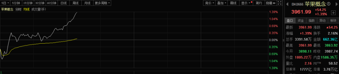 今日(8月20日)早盘,市场低开之后,苹果产业链集体拉升。安洁科技、朝阳科技直线封板,多只个股表现强劲,工业富联昨天更是封板。果链概念板块远远跑赢大盘和创业板,早盘一度劲升1.39%。