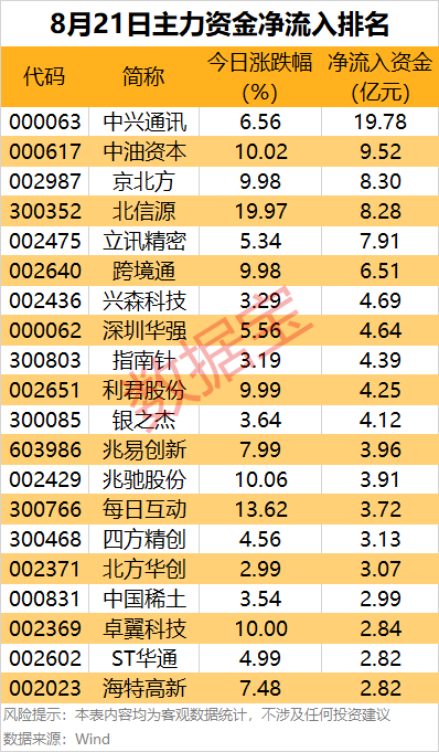 从个股来看,19股尾盘主力资金净流入金额均超4000万元,其中9股尾盘净流入均超8000万元。