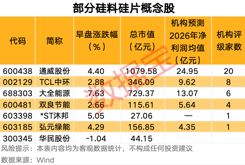 硅料硅片概念股早盘走高