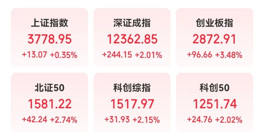 今日(9月5日)早盘,市场主要股指集体反弹,沪指上涨0.35%,深证成指上涨2.01%,创业板指盘中一度上涨超4%,午间收盘上涨3.48%,市场超3900股上涨,56股涨停。