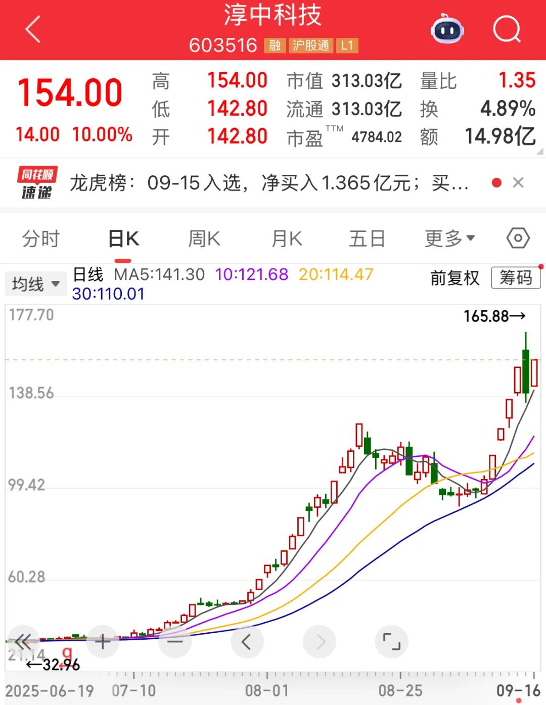 液冷服务器概念今日再度走强,淳中科技(603516)走出6天5板。今年7月中旬到8月,淳中科技与英伟达合作的消息在网络、社交平台甚至券商研究报告中持续发酵,公司股价从35元/股附近涨至目前的超150元/股。