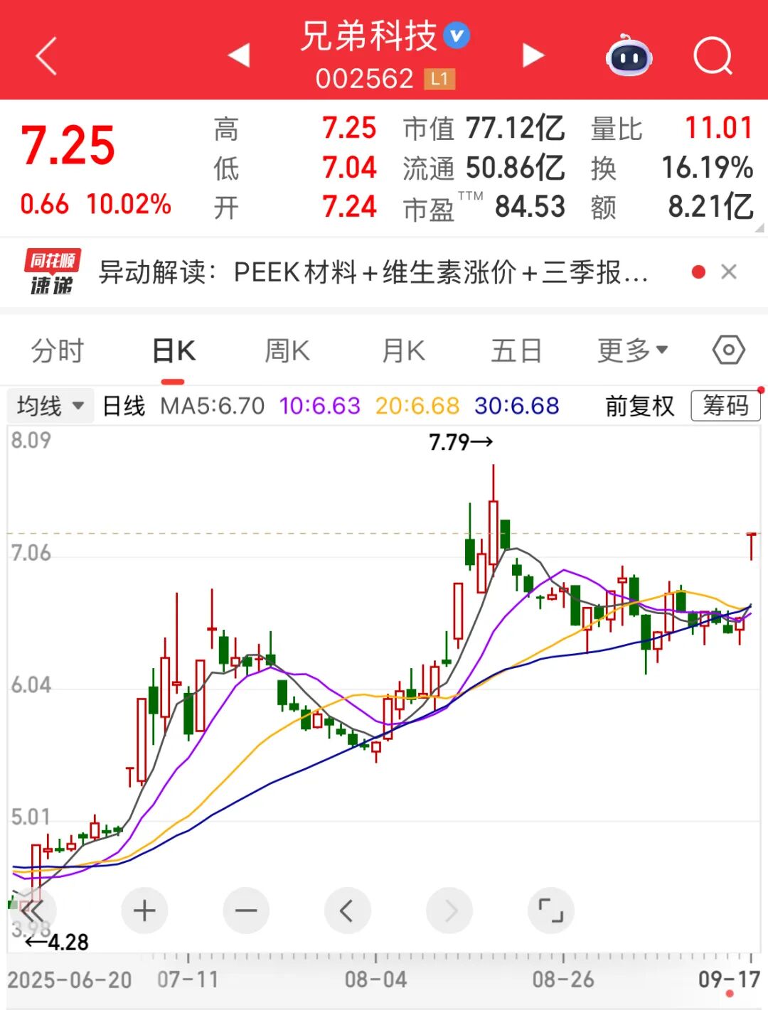 从股价表现看,兄弟科技今日早间大幅高开,开盘仅1分钟股价即封住涨停,涨停板封单资金超25万手。
