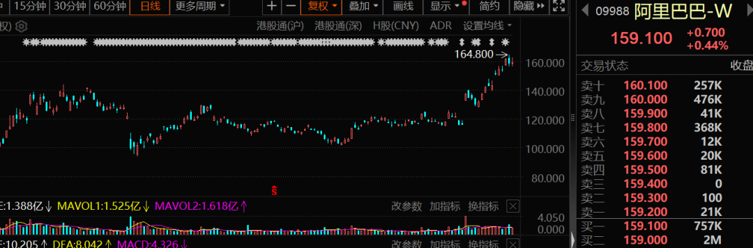 南向资金大举买入阿里巴巴-W