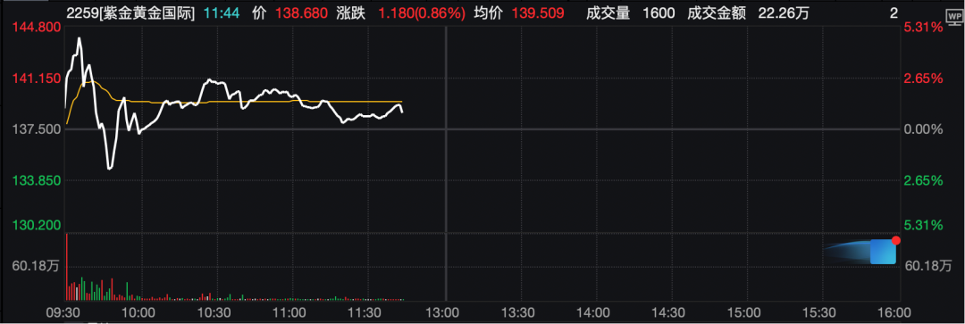 而上市后的第2个交易日,紫金黄金国际再度上涨14%,10月3日早盘,紫金黄金国际股价一度超过144港元/每股,这一价格较发行价71.59港元已翻倍,不过截至证券时报记者发稿,紫金黄金国际涨幅收窄,涨超1%。