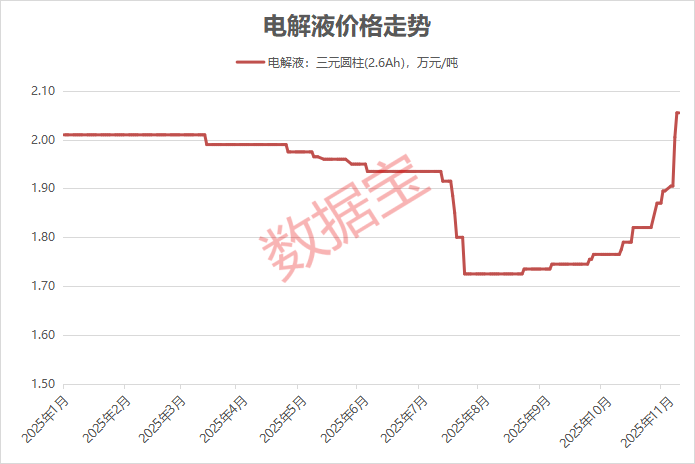 电解液价格上涨近20%