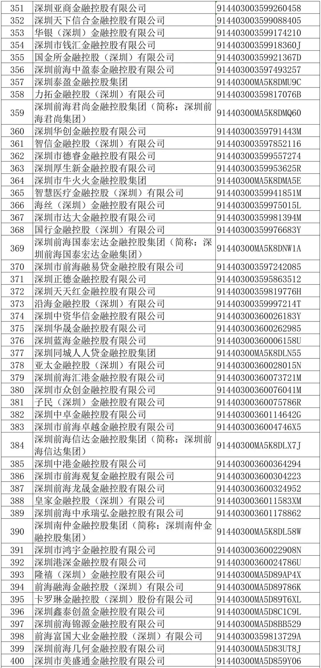 附件:深圳市未经批准使用“金融控股”“金融集团”等字样及名称中含有“金控”字样的经营主体名单