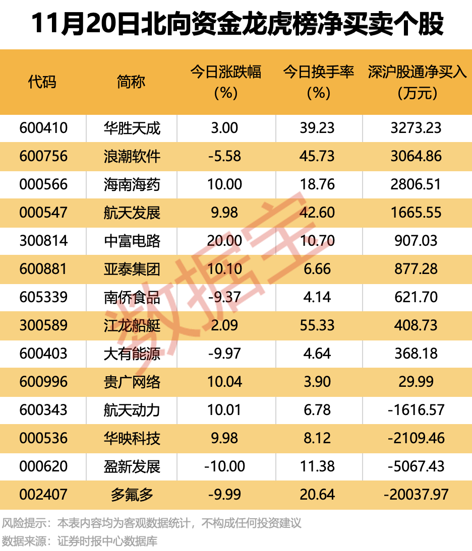 今日龙虎榜现身个股中,10股获北向资金净买入。净买入居前的是华胜天成、浪潮软件、海南海药,均超2800万元。