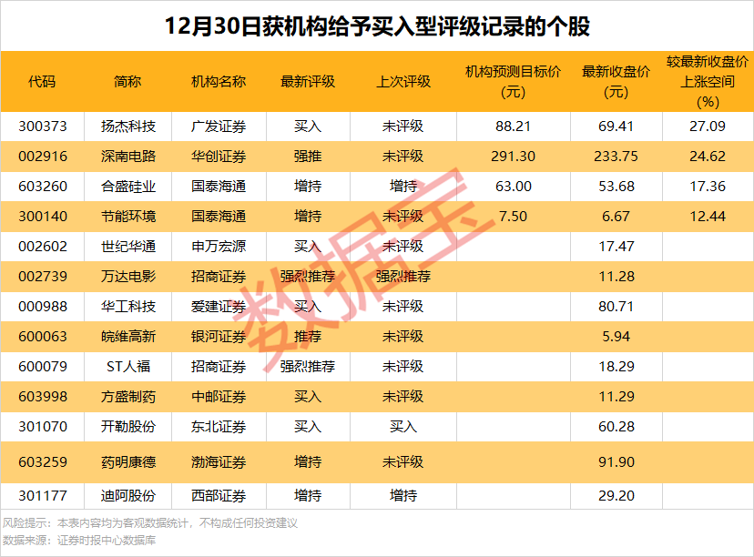 13股今日获机构给予买入评级