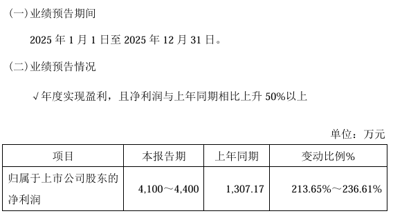 其中,长芯博创(300548)1月16日发布业绩预告,预计2025年归属于上市公司股东的净利润3.2亿—3.7亿元,同比增长344.01%—413.39%。