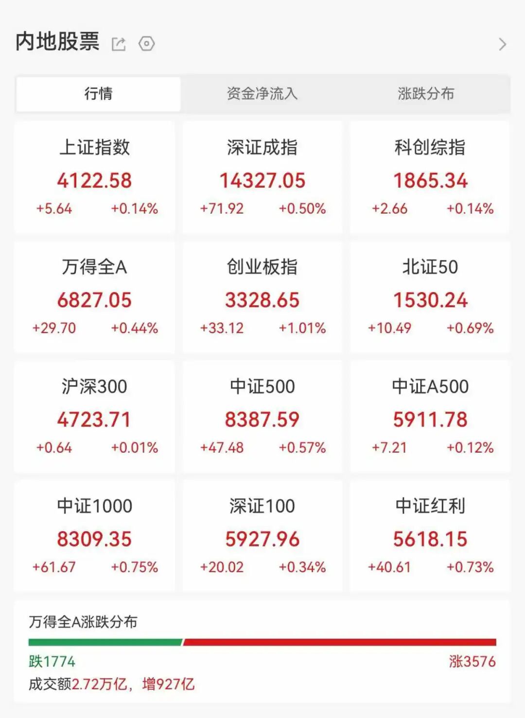 今日(1月22日),沪指全天窄幅震荡,收涨0.14%,最新报4122.58点。深证成指上涨0.5%,创业板指上涨1.01%。今日市场成交27164.05亿元,较昨日放量927.61亿元。