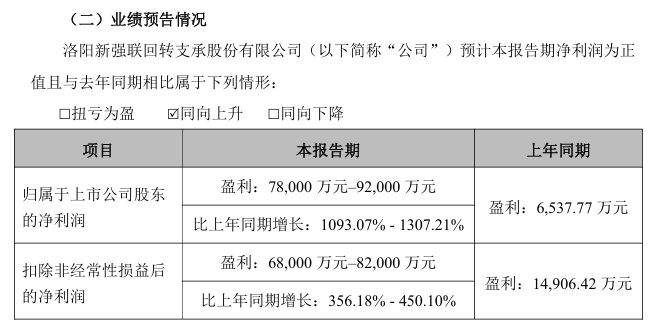新强联(300850)1月23日晚间发布公告称,预计2025年度归属于上市公司股东的净利润为7.80亿—9.20亿元,比上年同期增长1093.07%—1307.21%。对于业绩变动的原因,公司表示,受益于风电行业需求回暖,装机需求持续释放,公司依托技术优势进一步扩大了市场份额。在产能利用率保持较高水平的背景下,公司通过优化成本管控、提升高附加值产品比重,实现了产品毛利率的稳步提高。此外,报告期内非经常性损益预计对净利润的影响额约为9500万—11000万元,其中主要系持有金融资产产生的公允价值变动损益以及处置金融资产产生的损益所致。