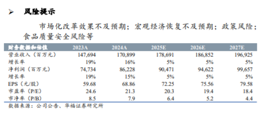 与此同时,其他机构给出的预测数据也显示,贵州茅台2025年营收及净利润或能够实现个位数的增长。