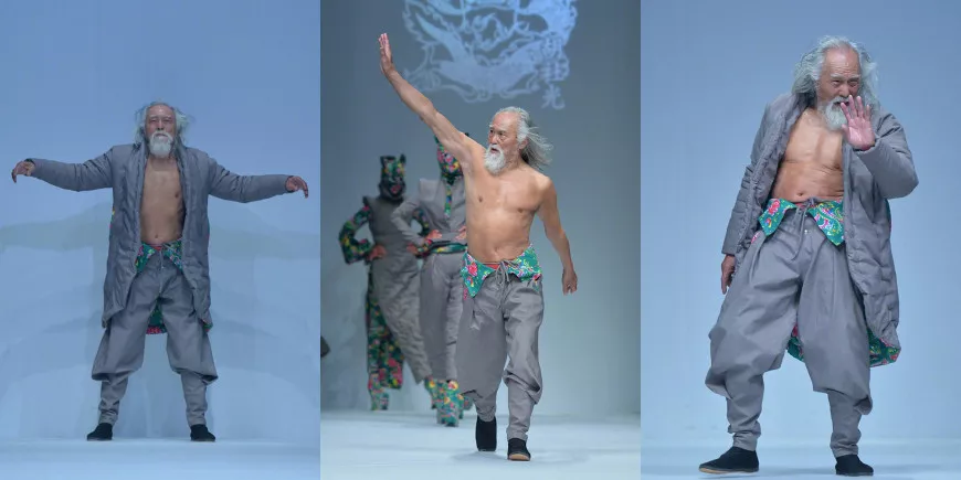 时间回到2015年3月25日,在北京国际时装周上,一个穿着大棉裤,蹬着黑布鞋,逆风而行的“少年”吸引了所有人的目光。