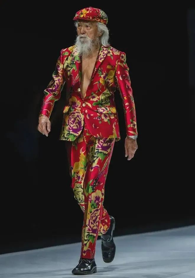 就在前一段时间,上海时装周T台秀上,88岁的王德顺穿着一身东北花衬衫亮相。