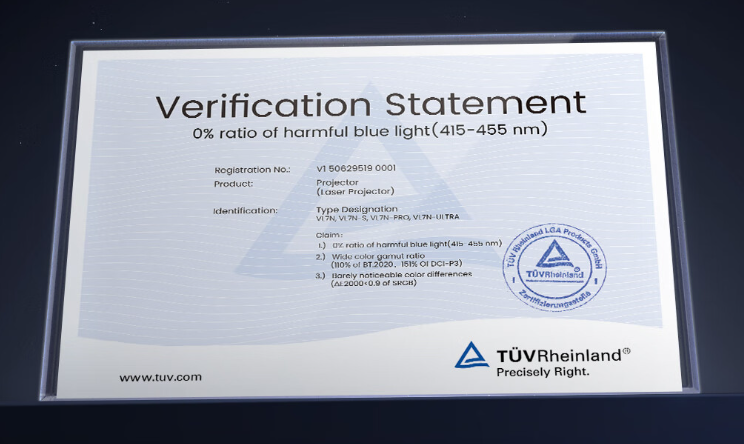 C2系列的四款新品获得了国际权威机构德国莱茵颁发的全球唯一的“0%有害蓝光”“广色域覆盖”和“极低色彩差异”智能投影验证声明,是目前市面上最为健康护眼的显示类产品。