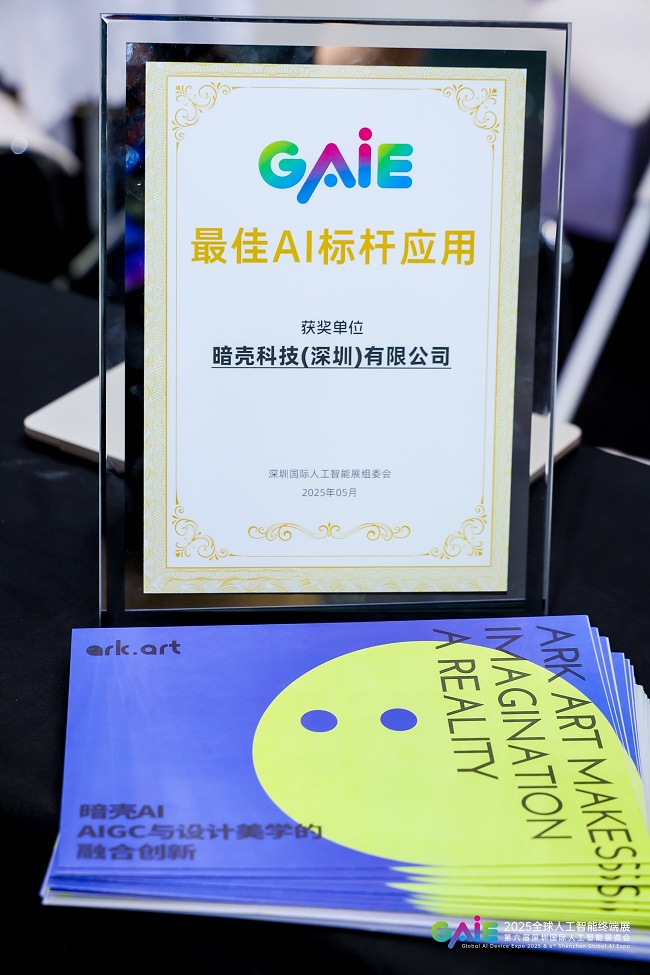 暗壳AI作为深圳市人工智能设计应用代表受邀参展,以“百万数据+美学系统+精准生成”的技术成为展会焦点,同时获评展会“最佳AI标杆应用”奖项。