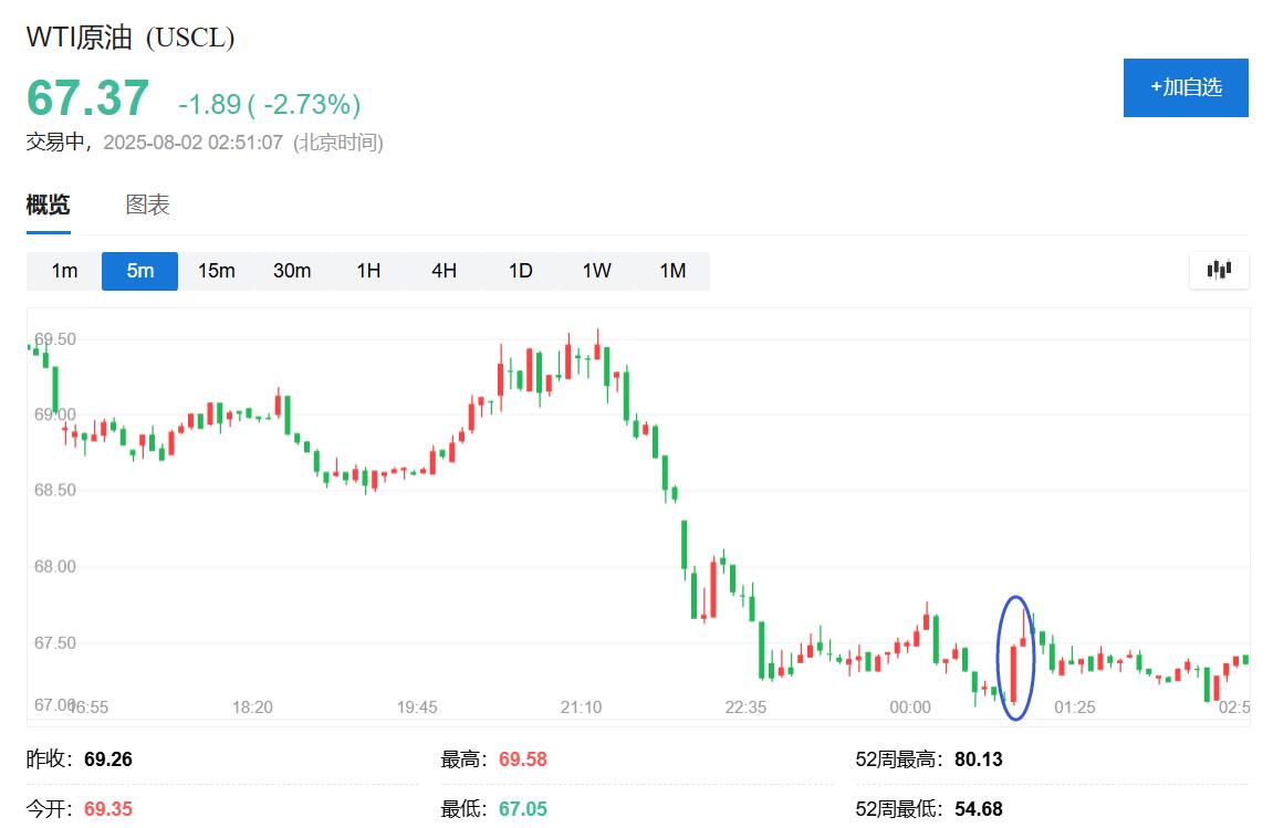美国WTI原油一度重上67.70美元,日内跌幅收窄到2.2%。周五美股午盘刷新日低时,美油跌破67.10美元,日内跌3.2%。盘中也曾跌3.2%的布伦特原油期货曾短线重上70美元关口、日内跌不足2.4%。