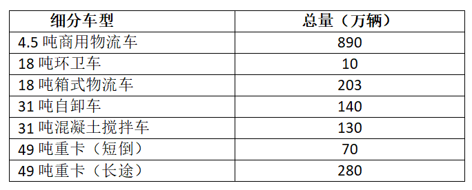 下面是骥翀氢能团队统计的氢燃料电池商用车市场理论上的替代空间。