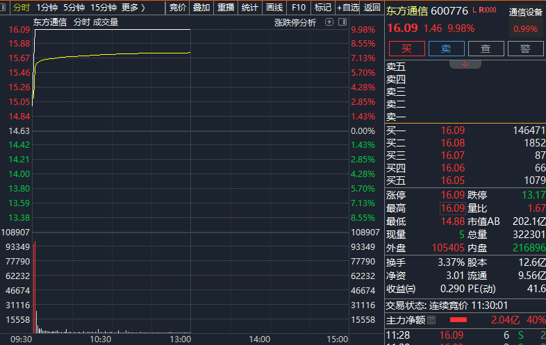 12月12日盘中,商业航天概念股再度掀起涨停潮。其中,东方通信开盘后被资金直线拉升至涨停板,用时仅1分钟。紧随其后,航天长峰、顺灏股份、再升科技、四创电子等纷纷涨停。