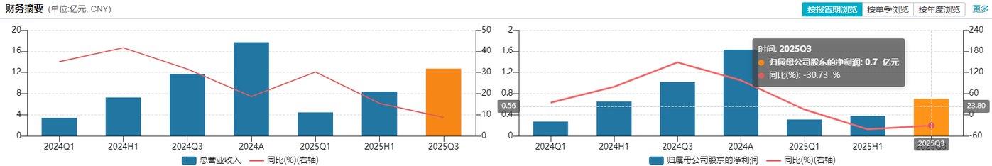 2025年前三季度更是陷入“增收不增利”的尴尬,营收12.72亿元同比增长8.73%,归母净利润却同比下滑30.73%至7039.53万元。资金链更显紧绷,截至9月末,公司账面货币资金仅2.55亿元,却背负8.07亿元短期计息负债。
