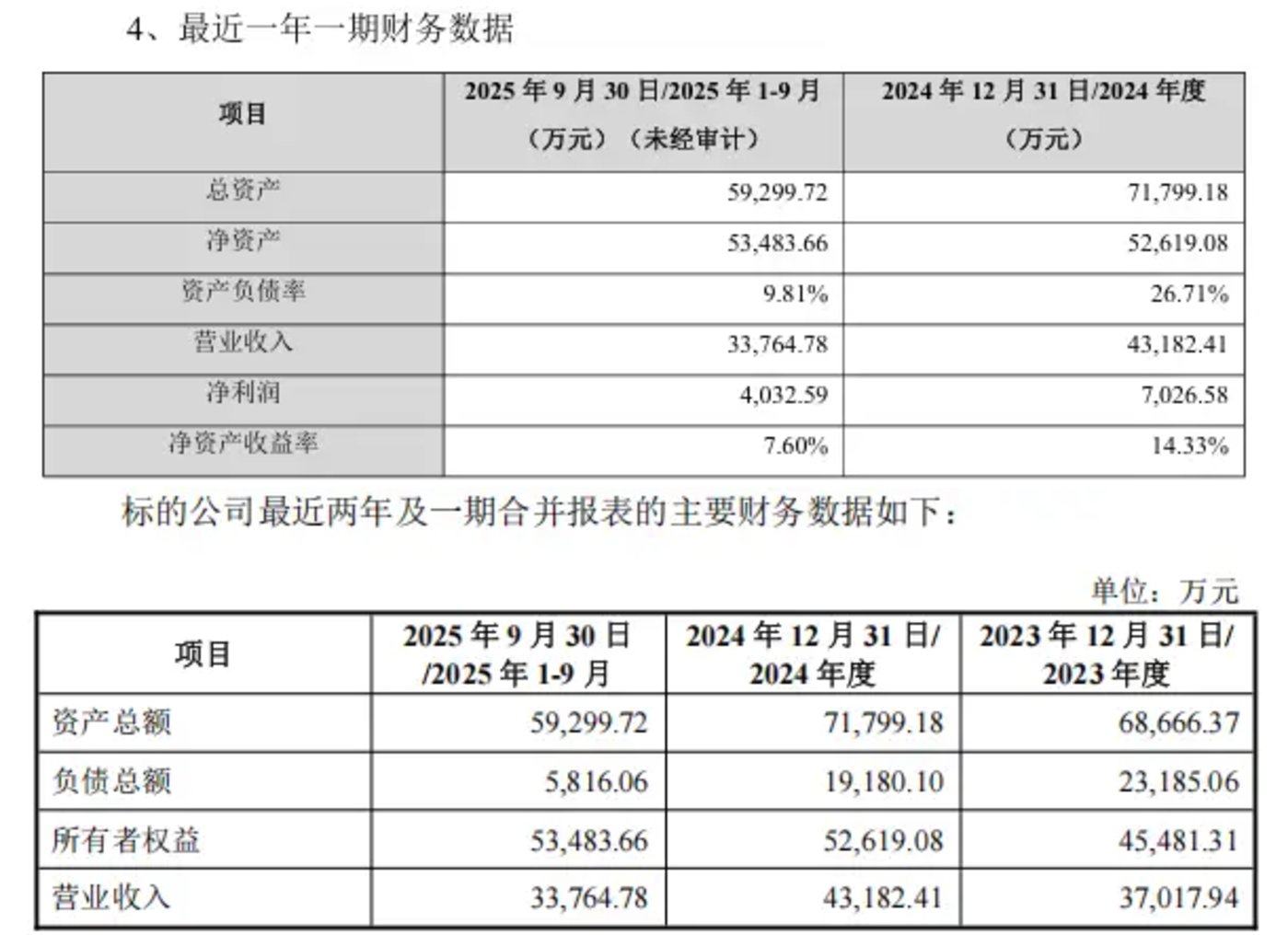 从标的资质来看,北京金康普具备一定盈利能力:2024年实现营业收入4.32亿元、净利润7026.58万元;2025年前三季度营收3.38亿元、净利润4032.59万元,截至2025年9月末总资产5.93亿元、所有者权益5.35亿元,资产负债率9.81%,财务状况相对稳健。