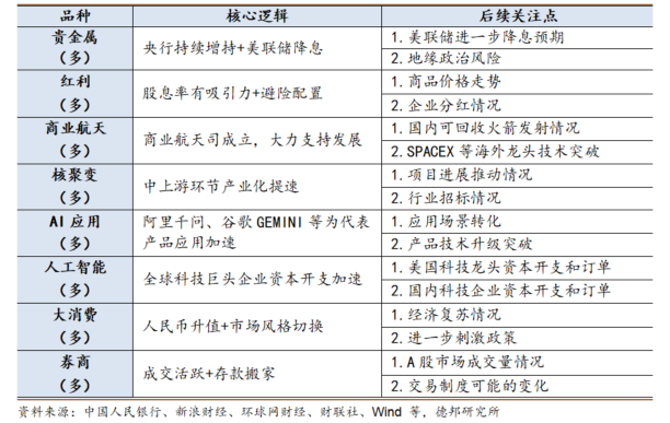 表1:近期热门品种梳理(括号内为近期趋势方向判断)