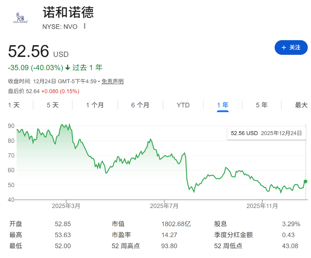 在整个2025年,由于临床试验结果不及预期以及礼来Zepbound展现出更优的减重效果,诺和诺德股价一度暴跌超过50%。此次与白宫的妥协以及新药上市的加速,被市场视为公司在专利悬崖逼近前,试图扭转颓势、利用“首发优势”阻击对手的背水一战。
