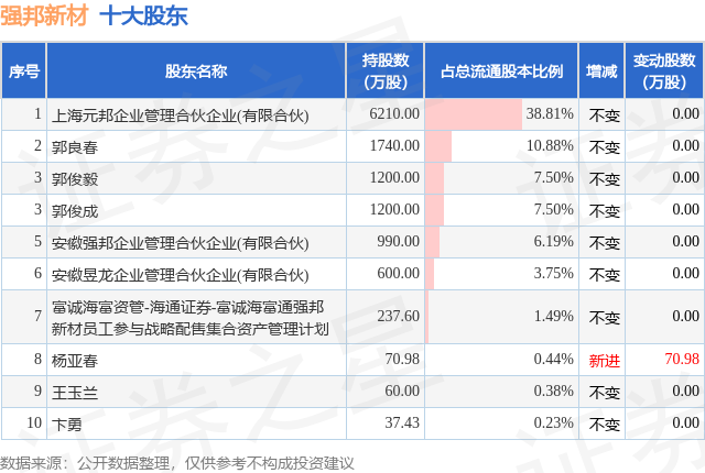 根据强邦新材2025年三季报公布的十大股东详情如下: