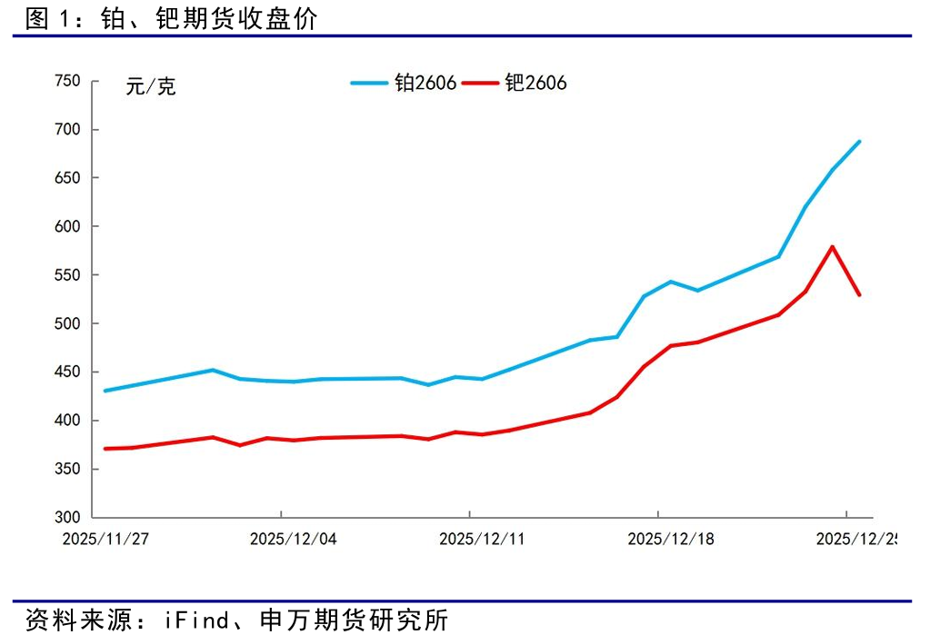 12月25日铂钯期货出现大幅回调,铂表现强于钯。自12月中旬以来,铂、钯强势上涨,短期积累涨幅较大,部分资金获利了结,导致铂钯波动较大。但从宏观环境和供需基本面来看,铂金仍具上行动能。
