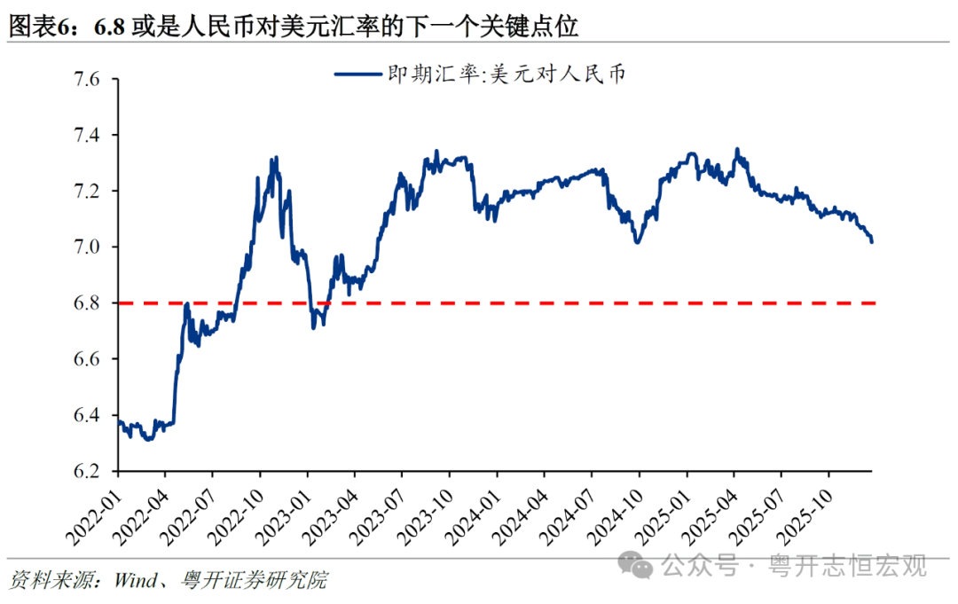 三、预计2026年人民币对美元汇率仍将保持较强势头,6.8或是下一个关键点位