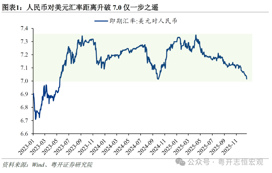 2025年人民币对美元汇率显著走强,尤其是11月下旬以来呈加速升值态势。12月25日,人民币对美元离岸汇率盘中升破7.0,在岸汇率距离“破7”也仅一步之遥。