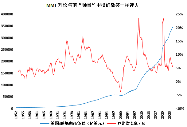 但是用变色油墨与无酸纸真的可以对抗“剩余价值”的铁论么?美国政府债务就像里根标志性的微笑一样,以指数级的上扬动摇着全世界的信心。