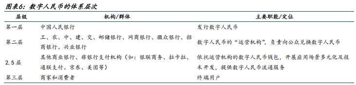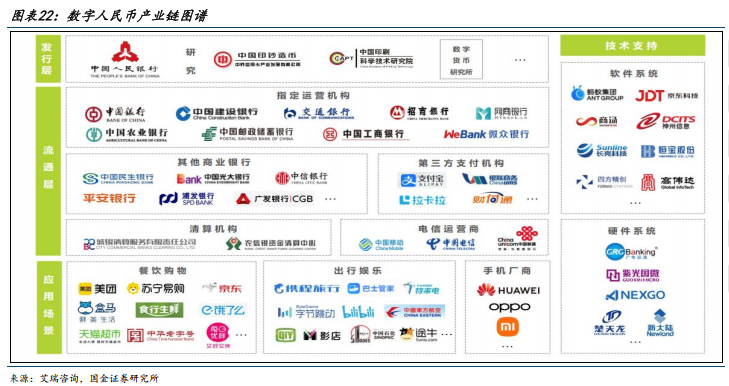 数字人民币的发行层、流通层、场景层均有技术升级需求、软硬件改造需求,相关技术、产品提供者有望受益。