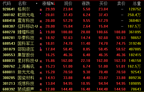 全A超3900股飘红,逾110股涨停。AI应用概念爆发,易点天下、昆仑万维20%涨停,星环科技创历史新高;商业航天概念热度不减,中国卫通尾盘涨停创出新高,臻镭科技、理工导航、航天电子等均创新高;有色板块强势,云南锗业、厦门钨业等涨停;创新药概念拉升,前沿生物、泓博医药等涨停。值得注意的是,锋龙股份(002931)斩获11连板,鲁信创投11日收获9板,志特新材(300986)连续5日20%涨停。